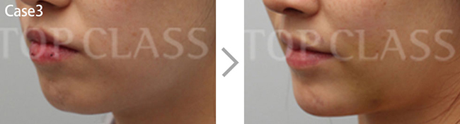 - 在局部麻醉下通过口腔内切口进行手术,使用与本人无下颏程度对应的假体。