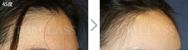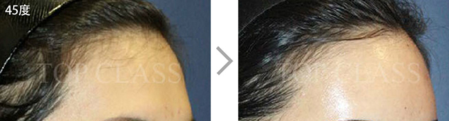 额头毫无立体感和曲线美,会使面部整体看起来宽阔。完成整体的曲线,打造立体的额头。