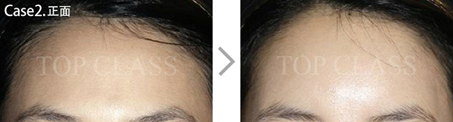 比实际看起来宽的额头型,比起眉毛上侧额头上侧部位要更略扩的稍厚,使额头看起来不显宽,为自然地额头曲线而手术
