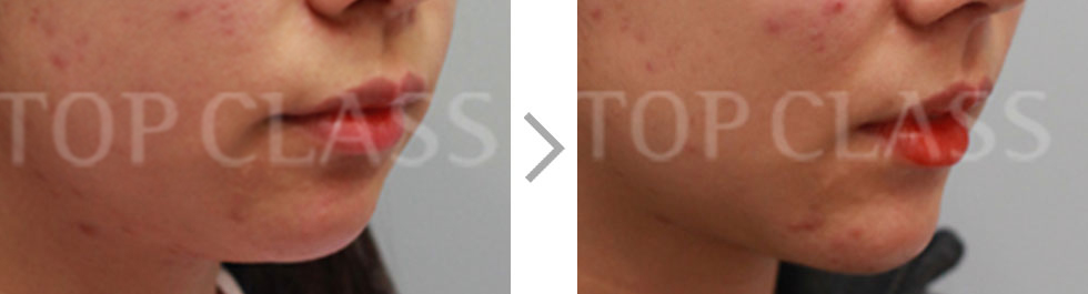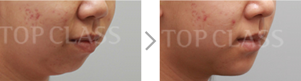 Surgery is carried out under general anesthesia. Horizontal osteotomy is carried out through incision inside the mouth. According to the degree of the short chin, the tip of the chin is moved forward and fixed using titanium plate.