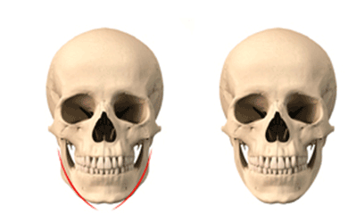 - In case of thick side jaw bone and large angle at the tip of the chin, sagittal splitting osteotomy is combined to optimize the front view of the face.