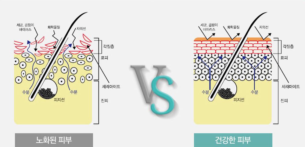노화된 피부는 피부 자체의 보습력이 떨어지며, 그로 인한 피부 주름,