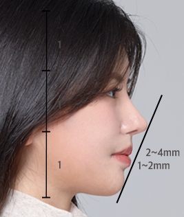 코 융비술로도 긴턱의 느낌을 개선할 수 있으며, 턱 끝의 보형물 삽입이나