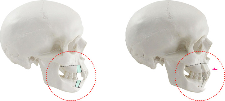 | 하 차조신경 손상을 막을수 있다 (아랫입술 감각이상 예방) | 하악각이 각지고 돌출된 경우 사각턱 증상이 심해질 수 있다. |