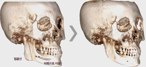 | 비교적 수술이 쉽다 | 입을 벌리기 힘들거나 저작근(씹는 근육)이 두꺼운 경우에는 시행이 어렵다 |