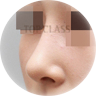 코끝이 내려 앉고 코끝과 콧대의 연결이 매끄럽지 못한 경우입니다. 비중격 연골 기둥으로 코끝을 힘있게 받쳐 세우고 보형물을 측두근막으로 감싸주어 자연스러우면서도 세련된 모습으로 교정해 줍니다.