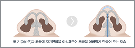 코끝 성형술은 비중격 연골 같은 자가조직을 채취하여 이를 콧구멍 사이의 비주기둥에